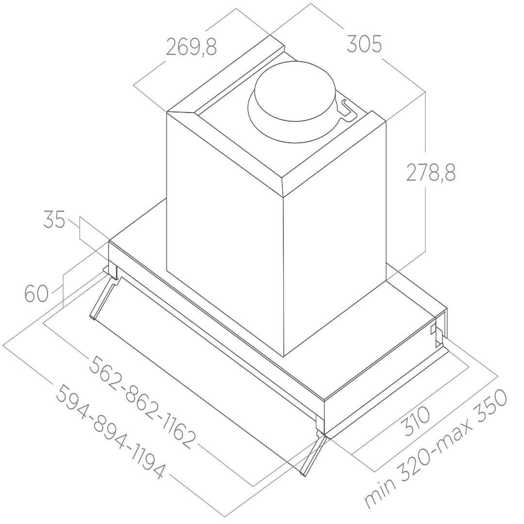 - Мин высота над газовой плитой: 57 см