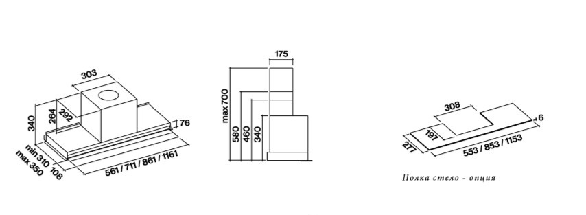 - Минимальное расстояние от варочной поверхности: 52 см