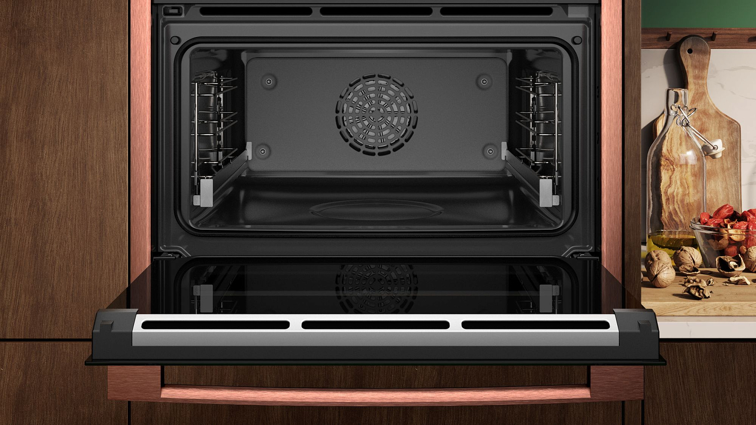 Особенности модели сенсорные переключатели Full Touch Control, светодиодное освещение, функции Sous-Vide, «Выпечка», «Пицца», «Тушение», «Режим для подъема теста», 4D-горячий воздух, CircoTherm, 23 режима нагрева и функция приготовления на пару, дверца духовки с амортизатором SoftMove