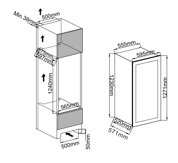 - При установке с помощью ножек отрегулируйте винный шкаф по уровню и убедитесь в наличии необходимых зазоров между дверью и мебельными фасадами, чтобы не повредить их.